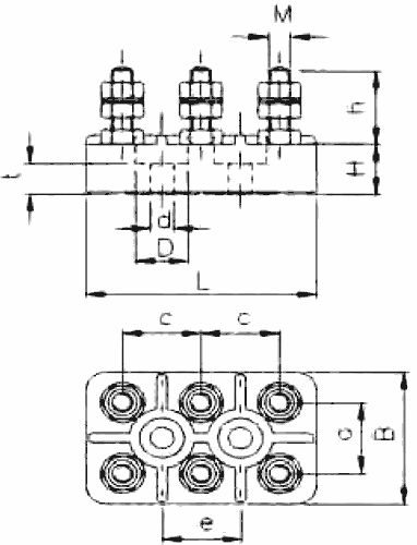KL0531CV  - Keramik-Motorklemmbrett KL 0531, 6-polig, M4, mit Brücken
